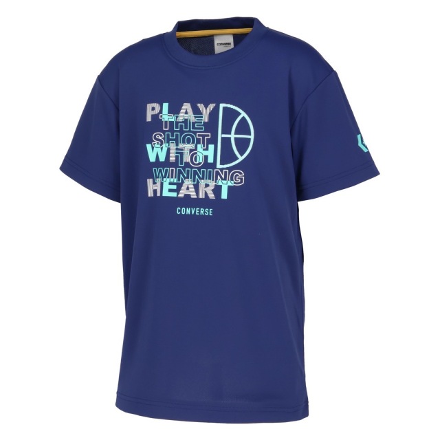 英文をシンプルなカラーとフォントで表現したグラフィックジュニアTシャツ。柔らかな肌触りに吸汗速乾を兼ね揃えたスポーツ向けアイテム。