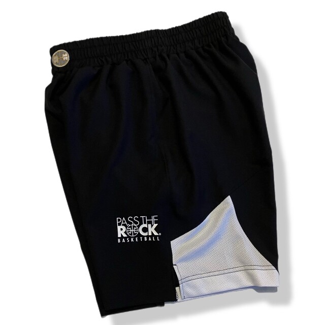 PASS THE ROCKのバギーパンツ。背面下部にはメ ッシュパネルを採用し、通気性とデザイン性の高いアイテム。コート上に映えるカラー2色と定番のブラックの3色展開。両サイドにポケット付き。