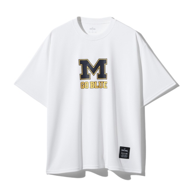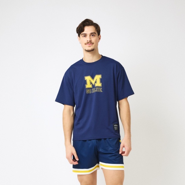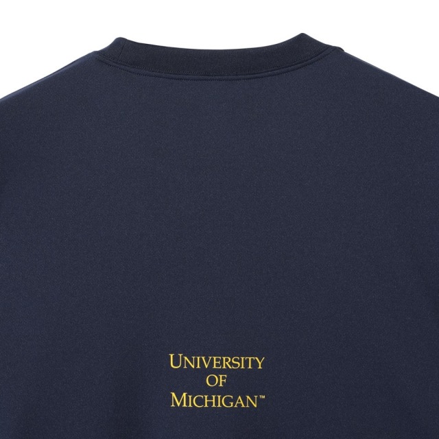 ●MICHIGANのアイコン“M”ロゴと掛け声“GO BLUE”を胸に配したTシャツ。
